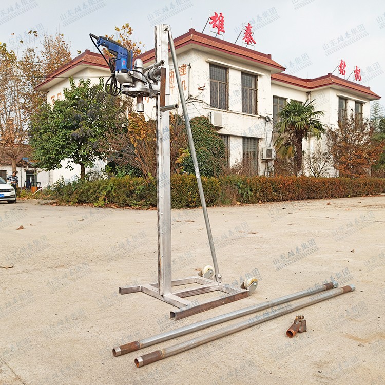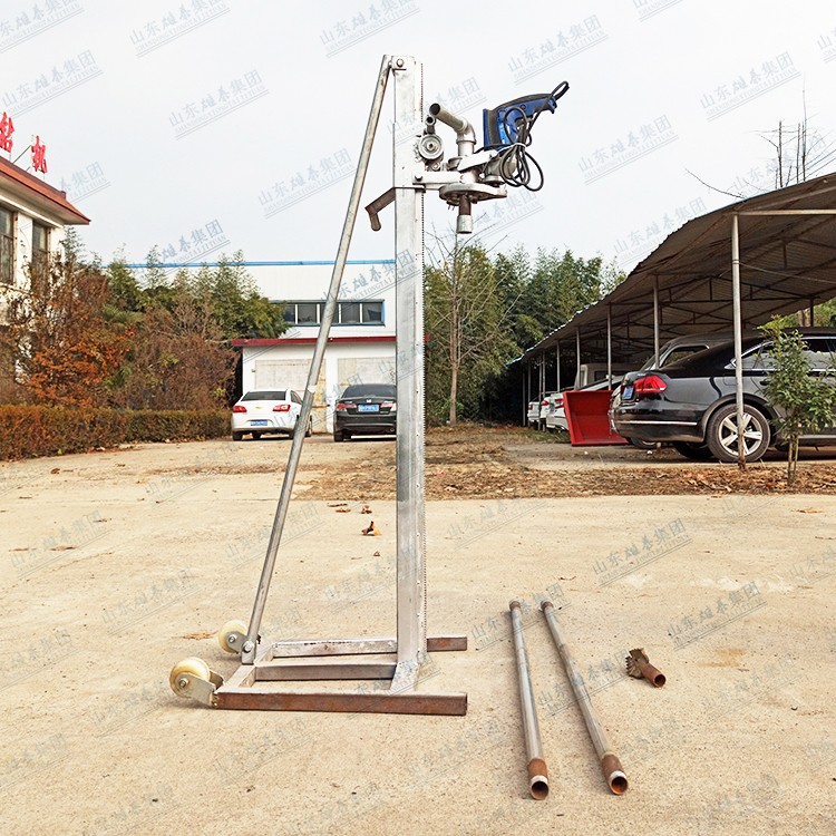 本款打井機(jī)采用了多齒輪設(shè)計(jì),雖然增加了生產(chǎn)成本和制造工藝,但這樣設(shè)計(jì)增加了打井機(jī)力量(就像汽車一檔比四檔有力、還便于掌握一樣的道理),打井有力,打井速度快、便于掌握。如果齒輪少了,一千瓦的電機(jī)還沒有七百多瓦的電機(jī)力量大、而且轉(zhuǎn)速高、打井時(shí)難于掌握。這款多齒輪結(jié)構(gòu)鉆井機(jī)經(jīng)過許多用戶多年使用,打井效果非常理想!便攜式小型民用電動(dòng)打井機(jī)廣泛應(yīng)用于家庭/工廠生活用水打井、農(nóng)田灌溉水井、安裝水空調(diào)、工地打樁等。本公司生產(chǎn)的便攜式小型民用電動(dòng)打井機(jī)機(jī)頭,可隨意選配鉆頭,鉆頭價(jià)格另算。也可另配鉆桿,鉆桿直徑是32mm、一根長約1.5米。